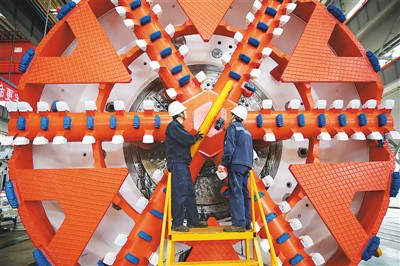 今年以來,濟(jì)南重工集團(tuán)有限公司打造以軌道交通裝備產(chǎn)業(yè)為核心的智能制造與高端裝備產(chǎn)業(yè)園,重點(diǎn)發(fā)展全斷面隧道掘進(jìn)機(jī)、隧道掘進(jìn)專用裝備、裝配式建材生產(chǎn)線等產(chǎn)品領(lǐng)域,老國(guó)企煥發(fā)出勃勃生機(jī)。圖為工人在查看即將完工的盾構(gòu)機(jī)刀盤。