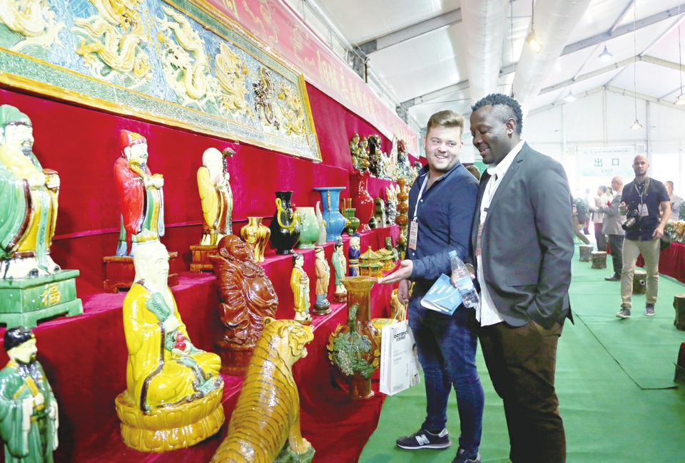 外國客商參觀陽城縣琉璃產(chǎn)品。 宋岳庭 攝