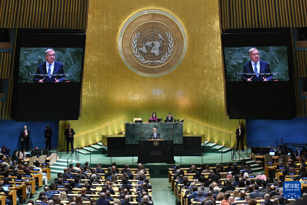 ??9月23日,在位于紐約的聯(lián)合國總部,聯(lián)合國秘書長古特雷斯在第80屆聯(lián)合國大會一般性辯論開幕式上致辭。新華社記者李睿攝