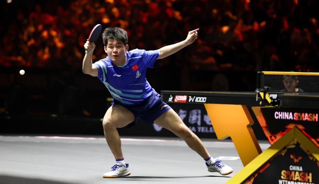 9月29日,林詩棟在比賽中回球。新華社記者 王楷焱 攝