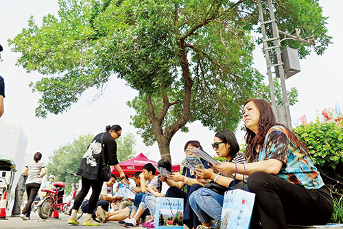 考場外家長們焦急地等待著