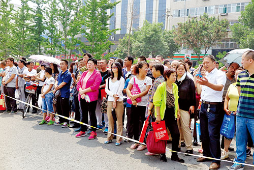 考場外家長們默默為考生加油祝福