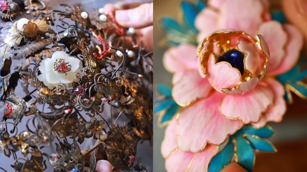 花絲鑲嵌技藝2008年被列入國家級非物質(zhì)文化遺產(chǎn)名錄。它以金、銀等為原料,采用掐、填、攢等技法,將金屬絲制成千姿百態(tài)的造型。