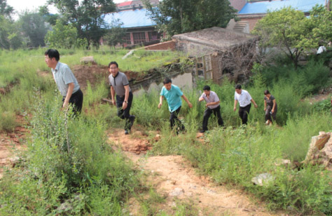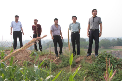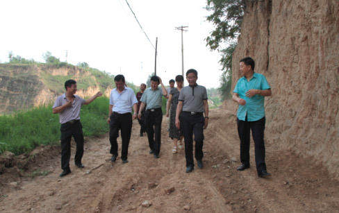 7月29日烈日炎炎,忻州氣溫高達(dá)30多度,下午16時(shí)許,忻府區(qū)區(qū)長(zhǎng)趙志偉,副區(qū)長(zhǎng)寧康平,忻府區(qū)國(guó)土資源局局長(zhǎng)白蕾,解原鄉(xiāng)黨委書(shū)記丁國(guó)倉(cāng),鄉(xiāng)長(zhǎng)王萬(wàn)榮和相關(guān)部門(mén)負(fù)責(zé)人,帶著忻州市委、市政府,忻府區(qū)委、區(qū)政府對(duì)東社村村民的關(guān)懷,趕赴解原鄉(xiāng)東社村實(shí)地了解情況。區(qū)長(zhǎng)趙志偉一行人驅(qū)車(chē)直奔現(xiàn)場(chǎng),徒步來(lái)到村東南角高鐵架空橋下,認(rèn)真察看高鐵架空橋下積水形成灘涂地段和防洪渠現(xiàn)狀后,漫步爬坡而上,走到村東南土方堆放處神臺(tái)溝(地名)。親自爬上高約7、8米的土堆,沿土堆一直走到源頭察看了積水情況,經(jīng)過(guò)對(duì)現(xiàn)場(chǎng)地形以及土堆源頭積水情況的細(xì)致調(diào)研,一行人汗流夾背地返回村口,連口水也來(lái)不急喝就開(kāi)始認(rèn)真地分析問(wèn)題。