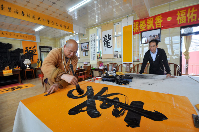 29日,中國佛教講經(jīng)交流會在五臺山召開之際,記者走訪了東臺頂望海寺釋覺一法師,他在勤修佛法的同時(shí)在書畫藝術(shù)上也自成一家。他認(rèn)為,佛法與書畫關(guān)系密切相通之處,學(xué)習(xí)佛法可促進(jìn)書法境界的提升,有助于佛法的弘揚(yáng)。