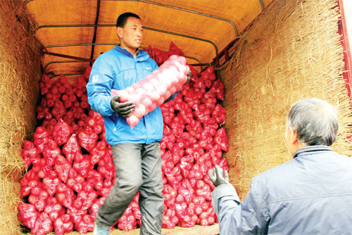 10月23日,原平市果農(nóng)正在德金城農(nóng)產(chǎn)品交易市場卸貨,進行銷售。原平市著力打通農(nóng)產(chǎn)品銷售渠道,通過創(chuàng)建市場、加強管理,將當?shù)剞r(nóng)產(chǎn)品規(guī)范到統(tǒng)一銷售場所,抱團銷售農(nóng)產(chǎn)品,不僅方便了消費者,而且便于走出去,打造知名品牌。(吉建平 攝)