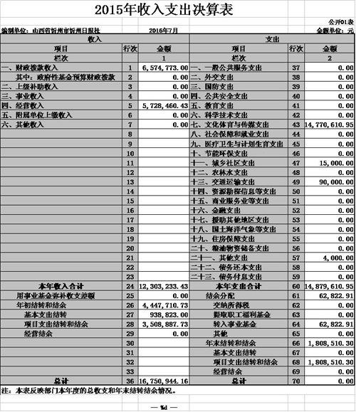 忻州日?qǐng)?bào)社2015年度部門(mén)決算