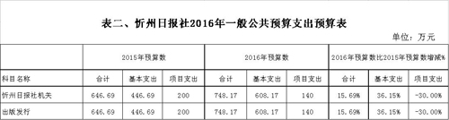 忻州日?qǐng)?bào)社2016年度部門預(yù)算及“三公”經(jīng)費(fèi)預(yù)算公開情況
