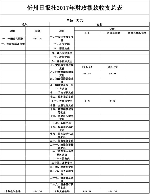 忻州日?qǐng)?bào)社2017年度部門預(yù)算及“三公”經(jīng)費(fèi)預(yù)算公開(kāi)情況