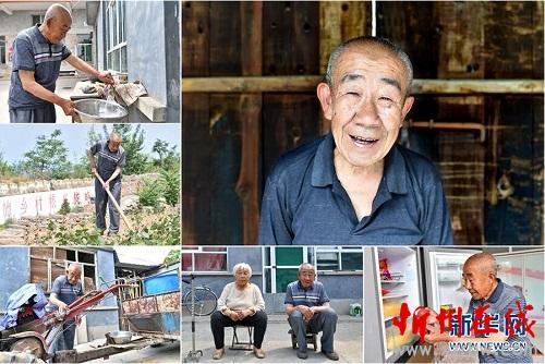 郭中其,男,1949年出生,山西省長治市潞城區(qū)常村人,全家6口人靠種地為生,因家人重病而造成生活困難。被納入建檔立卡貧困戶后,郭中其家人治病的花銷顯著減少,子女參加了免費(fèi)技能培訓(xùn)并找到了工作,家里的生活條件得到了改善,2017年全家脫了貧。 右上:郭中其肖像;左上:郭中其在院子里接水;左中:郭中其在田地里鋤草;左下:郭中其在擦拭拖拉機(jī);下中:郭中其和老伴坐在院子里;下右:郭中其從冰箱里拿出西紅柿(拼版照片,6月12日攝)。 地處晉東南的山西省長治市,位于由太行山、太岳山環(huán)繞而成的上黨盆地中。在群山中、崖壁上,許多村莊自然條件惡劣,基礎(chǔ)設(shè)施落后,脫貧致富是大山深處人們的迫切心愿。 近年來,一場場脫貧攻堅戰(zhàn),在一個個深山村打響。政府全力探索脫貧路徑的同時,山區(qū)百姓因地制宜,靠自己的雙手和智慧走上致富路,交出了一份扎實的脫貧答卷。 記者在太行山、太岳山一路尋訪,記錄下多位70歲老人的生活。這些共和國的同齡人,親歷了山鄉(xiāng)的巨變,見證著長治山區(qū)脫貧攻堅偉大工程的一步步推進(jìn)。 新華社記者 曹陽 攝