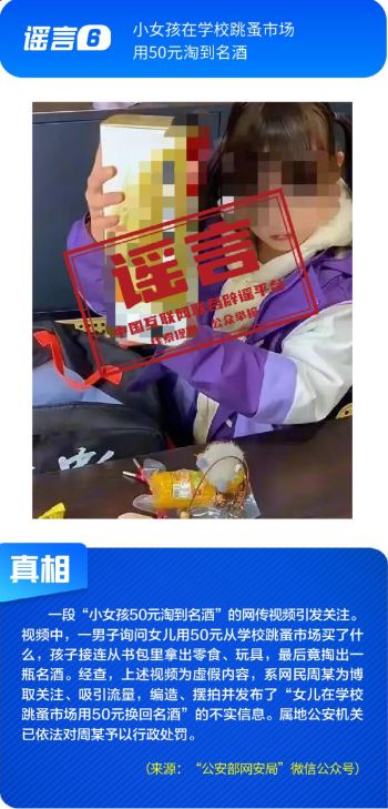 ??社會民生領(lǐng)域謠言引發(fā)不當(dāng)炒作。“小女孩在學(xué)校跳蚤市場用50元淘到名酒”的視頻,實為擺拍炒作,虛構(gòu)“撿漏”情節(jié)博取流量;“某奶茶品牌疑似擦邊毒品”蹭炒網(wǎng)上熱點,似是而非、夸大其辭的說法對企業(yè)合法經(jīng)營造成困擾,也引發(fā)公眾不必要的焦慮;“微信好友數(shù)量過多會被封號”系對平臺運營機制的無端猜測,利用網(wǎng)民對平臺規(guī)則的陌生進(jìn)行炒作,還可能給黑灰產(chǎn)帶來可乘之機。