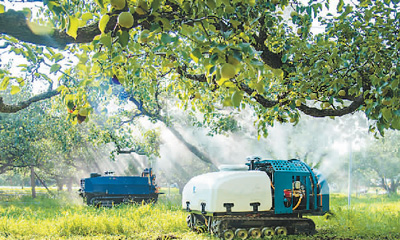 安徽省宿州市碭山縣近年大力推廣“人工智能+數(shù)字果園”模式,推動(dòng)碭山酥梨產(chǎn)業(yè)智能化、數(shù)字化轉(zhuǎn)型,為鄉(xiāng)村振興和數(shù)字鄉(xiāng)村建設(shè)夯實(shí)基礎(chǔ)。圖為碭山縣一家果園內(nèi),果園機(jī)器人在噴施生物農(nóng)藥。崔 猛攝(人民視覺(jué))