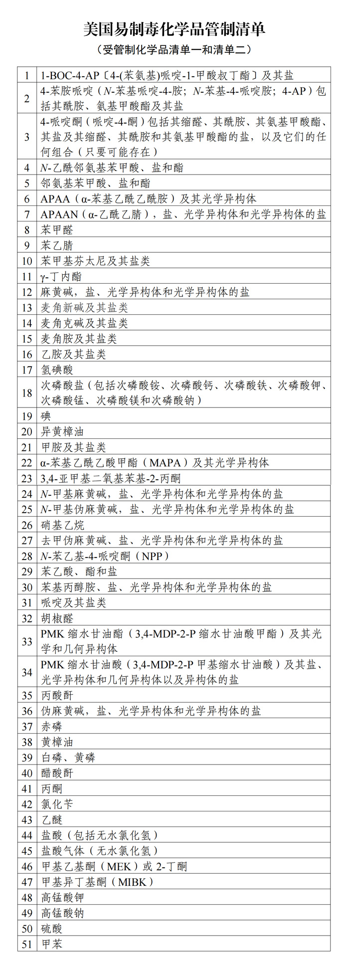 8.涉及美國(guó)管制化學(xué)品(品種詳見(jiàn)附件)的生產(chǎn)、經(jīng)營(yíng)、進(jìn)出口企業(yè)和個(gè)人應(yīng)謹(jǐn)慎對(duì)待來(lái)自美國(guó)和墨西哥等相關(guān)國(guó)家的訂單,警惕出口物品被用于制造毒品和可能面臨的“長(zhǎng)臂管轄”甚至“釣魚(yú)執(zhí)法”的風(fēng)險(xiǎn)。