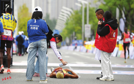 賽道內(nèi)外,另一群身影同樣令人動容。志愿者們沿途遞水補給、指引方向,沙啞的嗓音里滿是熱忱;醫(yī)護人員隨身攜帶急救設備,目光緊盯著每一位跑者,隨時準備伸出援手。他們的全程守護,如同秋日里的暖陽,成為賽道上最溫暖的風景。