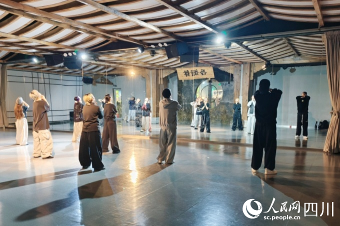 東郊記憶園區(qū)HELLODANCE吾街舞工作室內(nèi),街舞愛好者正在練習舞蹈。人民網(wǎng) 趙祖樂攝