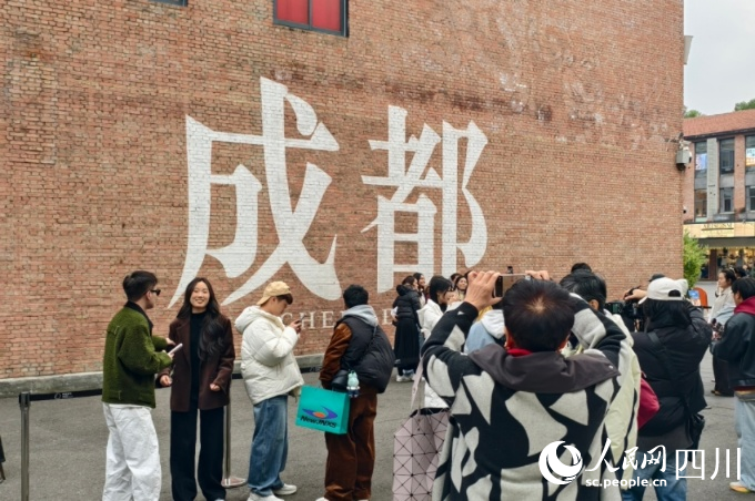東郊記憶園區(qū)“成都墻”以巨大的“成都”字樣和獨特的藝術(shù)設(shè)計成為園區(qū)的網(wǎng)紅打卡地,吸引了眾多游客和市民前來參觀。人民網(wǎng) 趙祖樂攝