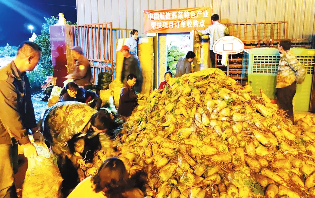 11月19日,神池縣西嶺村芥菜收購點一派繁忙景象。今年年初,在神池縣開展幫扶工作的中國航信集團領(lǐng)導(dǎo)調(diào)研了解到,地處管涔山國家生態(tài)林保護區(qū)的西嶺村芥菜種植收益高,決定出資在西嶺村打造華北海拔最高的蔬菜種植基地。他們扶持該村成立了芥菜種植專業(yè)合作社,聯(lián)系加工企業(yè)與農(nóng)民簽訂訂單收購協(xié)議,并提供技術(shù)支持和種植補貼,還給種菜戶購買了種植保險。今年西嶺村的1000畝芥菜獲得大豐收,畝產(chǎn)達到6000斤,全村157戶農(nóng)戶戶均增收1萬元,真正把小芥菜做成了農(nóng)民致富的大產(chǎn)業(yè)。(鄭志東 攝)