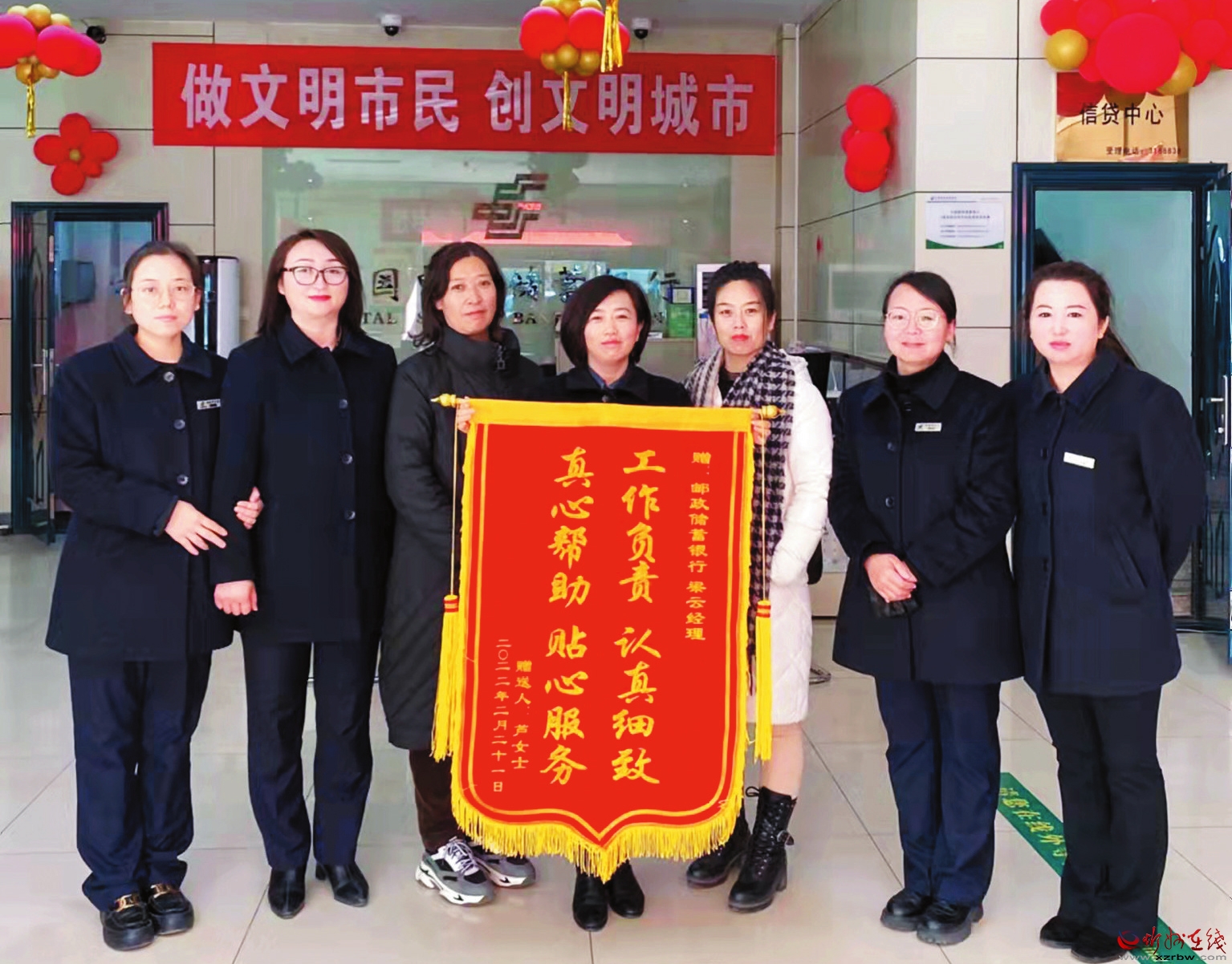 市民蘆女士給郵儲銀行忻州市分行人民公園支行送錦旗