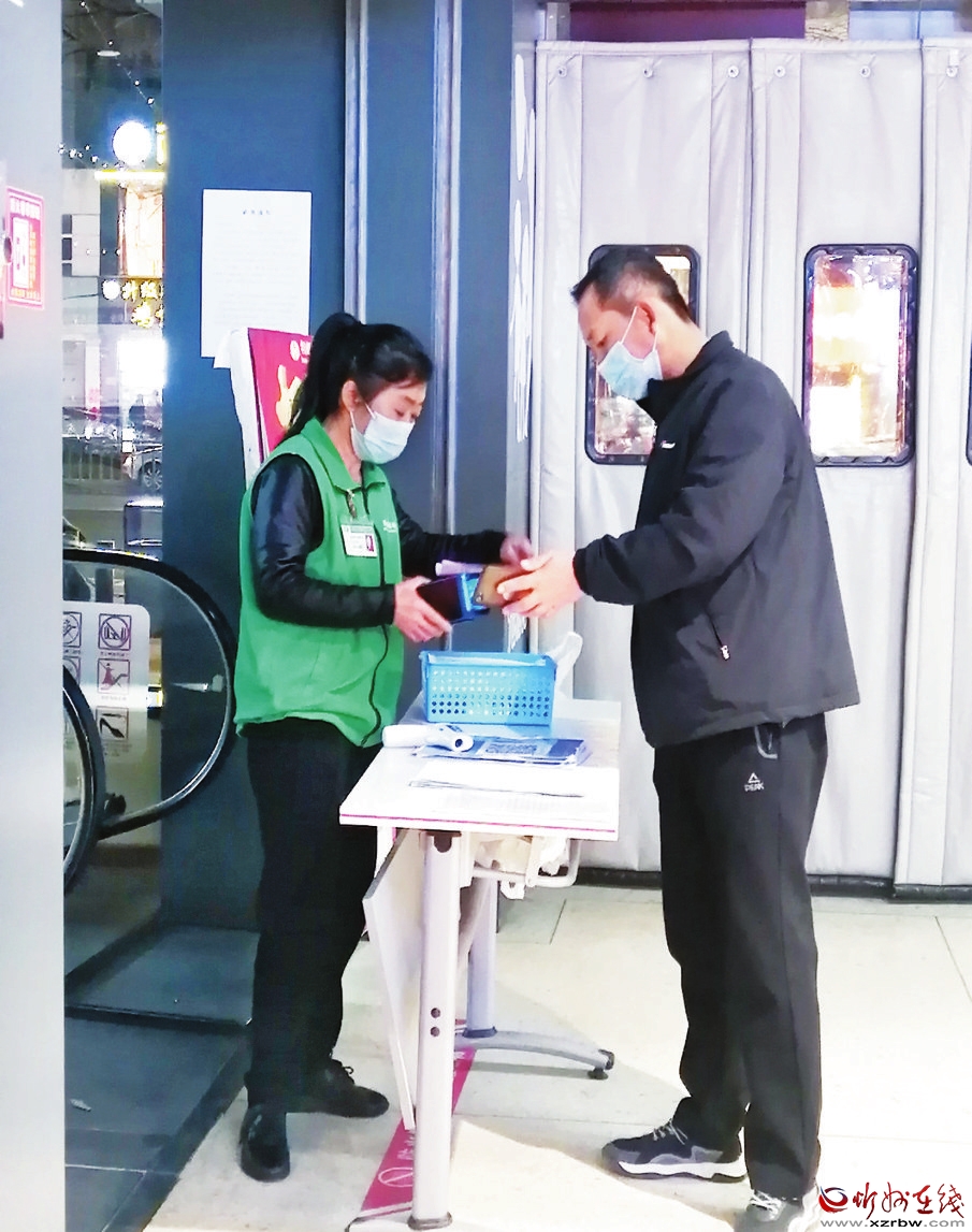 從嚴(yán)從實(shí)抓好疫情防控工作,涉及方方面面,須臾不可松懈。圖為城區(qū)華美超市顧客進(jìn)入購物必須測體溫,出示健康碼和行程碼。(記者 李 濤 攝)