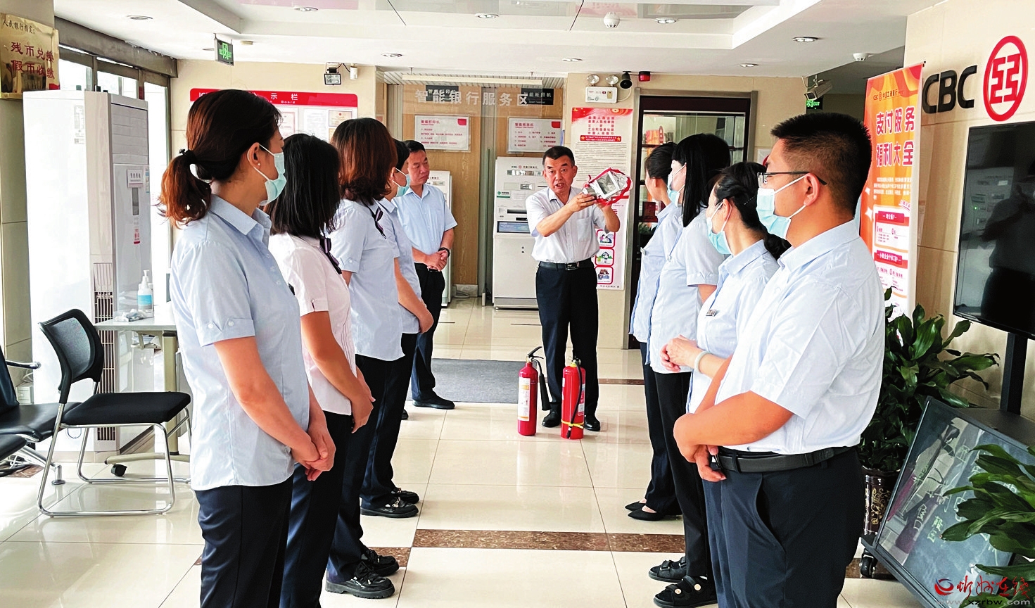 為增強員工的消防意識和避險自救能力,近日,工行忻州和平街支行舉辦了2022年度夏季消防安全培訓(xùn)。培訓(xùn)內(nèi)容通俗易懂、操作性強,力求讓大家做到“四懂四會”,即懂本崗位的火災(zāi)危險性、懂預(yù)防火災(zāi)的措施、懂滅火方法、懂逃生方法;會報警、會使用消防器材、會撲救初起火災(zāi)、會組織人員疏散逃生。圖為專業(yè)人士現(xiàn)場演示了干粉滅火器等消防器材的使用方法,講解了火災(zāi)事故的處理方法等。(班如喜 攝)