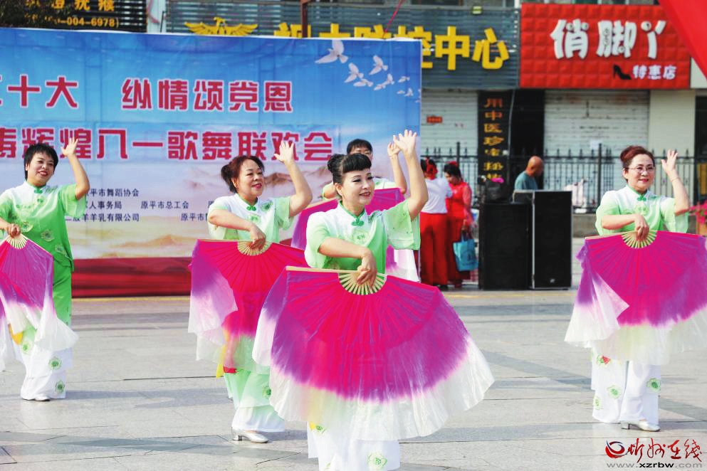 上午8時(shí),在現(xiàn)場觀眾的歡呼聲中,歌舞聯(lián)歡會激情開幕。城西社區(qū)藝術(shù)鑼鼓隊(duì)首先上場,激越的鼓點(diǎn)鏗鏘有力、澎湃高亢,打出了振原平雄風(fēng)、鑄原平輝煌的雄心壯志;旗韻模特藝術(shù)協(xié)會的廣場舞《唱支山歌給黨聽》,舞姿翩翩、悠揚(yáng)情深;廣場舞《我和我的祖國》,體現(xiàn)了“祖國偉大,我愛祖國”的主題;廣場舞《盛世歡歌》《共筑中國夢》,深情抒發(fā)了同心共筑中國夢的時(shí)代激情;快樂健身舞蹈隊(duì)的《扇子舞》,別出心裁,特色鮮明;原平市大金操隊(duì)的廣場舞《火了 火了 中國》和觀眾發(fā)生強(qiáng)烈共鳴,現(xiàn)場許多人情不自禁舞動起來。聯(lián)歡會以團(tuán)結(jié)協(xié)作、勇敢奮進(jìn)為精神,向八一建軍節(jié)獻(xiàn)禮高歌。
