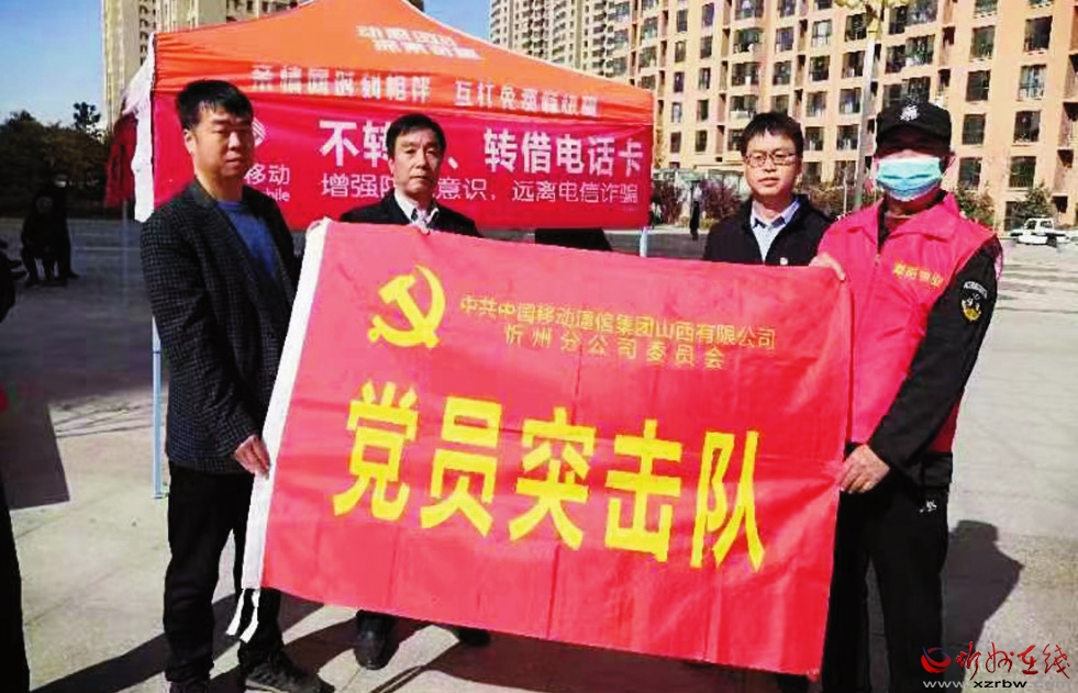 為普及防范電信網(wǎng)絡(luò)新型違法犯罪知識(shí),最大限度地減少電信網(wǎng)絡(luò)詐騙案件發(fā)生,切實(shí)做好人民群眾的安全防范教育,10月14日,忻州移動(dòng)公司黨員突擊隊(duì)帶領(lǐng)員工深入雁門小區(qū)開展防電信詐騙宣傳活動(dòng)。