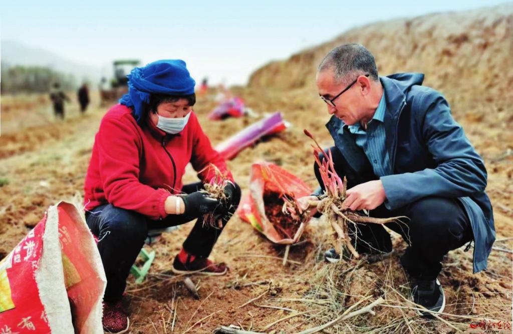 近日,五臺縣陽白鄉(xiāng)桑院村北部嶺坡地種植的大片芍藥進(jìn)入收獲季。村黨支部書記、村委會主任李肖峰帶領(lǐng)村民忙著機(jī)械采挖、分級歸類、拾撿裝運(yùn)、晾曬、銷售等,田間地頭一派忙碌景象。多年來,陽白鄉(xiāng)黨委政府不斷調(diào)整農(nóng)業(yè)產(chǎn)業(yè)結(jié)構(gòu),通過鼓勵農(nóng)民種植芍藥、黃芩、黃芪等中藥材,帶動當(dāng)?shù)厝罕娫鍪罩赂?。上圖為機(jī)械采挖場景;下圖為李肖峰為村民講解藥材分級歸類注意事項(xiàng)。(王金龍攝