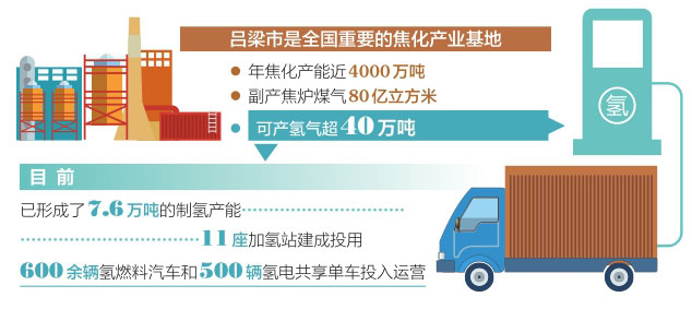 目前,呂梁形成了7.6萬噸的制氫產(chǎn)能,11座加氫站建成投用,600余輛氫燃料汽車和500輛氫電共享單車投入運營。呂梁到天津760公里的氫能重卡零碳運輸線路成功開通,年產(chǎn)30萬輛氫燃料電池車輛及配套核心零部件生產(chǎn)線和1萬臺電堆及配套膜電極項目正在加快推進。