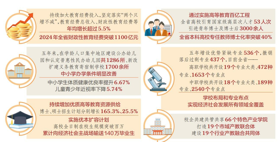 教育是國之大計(jì)、黨之大計(jì),也是每個(gè)家庭的心頭事?!笆奈濉币詠?,在省委、省政府堅(jiān)強(qiáng)領(lǐng)導(dǎo)下,全省教育系統(tǒng)深入貫徹落實(shí)習(xí)近平總書記關(guān)于教育的重要論述,全面貫徹黨的教育方針,堅(jiān)定落實(shí)教育優(yōu)先發(fā)展戰(zhàn)略,有力推動(dòng)“十四五”規(guī)劃各項(xiàng)指標(biāo)任務(wù)全面完成,為“十五五”時(shí)期加快建設(shè)教育強(qiáng)省奠定了堅(jiān)實(shí)基礎(chǔ)。
