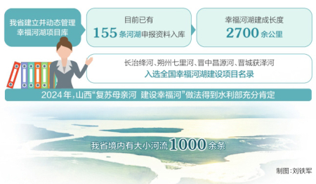 立足全省實(shí)際,我省同步推進(jìn)母親河復(fù)蘇與幸福河湖建設(shè),印發(fā)《山西省母親河名錄》,制定《山西省推進(jìn)母親河復(fù)蘇建設(shè)幸福河湖三年行動(dòng)方案(2024—2026年)》,優(yōu)先把各市縣母親河打造成幸福河。2024年,我省“復(fù)蘇母親河建設(shè)幸福河”做法得到水利部充分肯定。