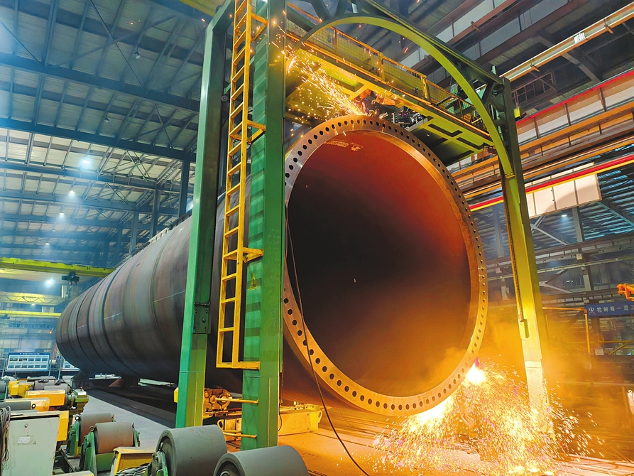 1月19日,在省級(jí)裝配式建筑產(chǎn)業(yè)鏈“鏈核”企業(yè)山西鋼構(gòu)科工有限公司智能制造車間內(nèi),一臺(tái)巨型壓力容器正進(jìn)行焊接作業(yè)。輥道與龍門架穩(wěn)穩(wěn)托舉著數(shù)十米長(zhǎng)的鋼構(gòu)件,自動(dòng)化系統(tǒng)實(shí)時(shí)監(jiān)測(cè)焊縫質(zhì)量,全力保障昔陽(yáng)、陽(yáng)曲、廣靈、屯留等地風(fēng)電項(xiàng)目塔筒制作。 賈曉瑞 王宇攝