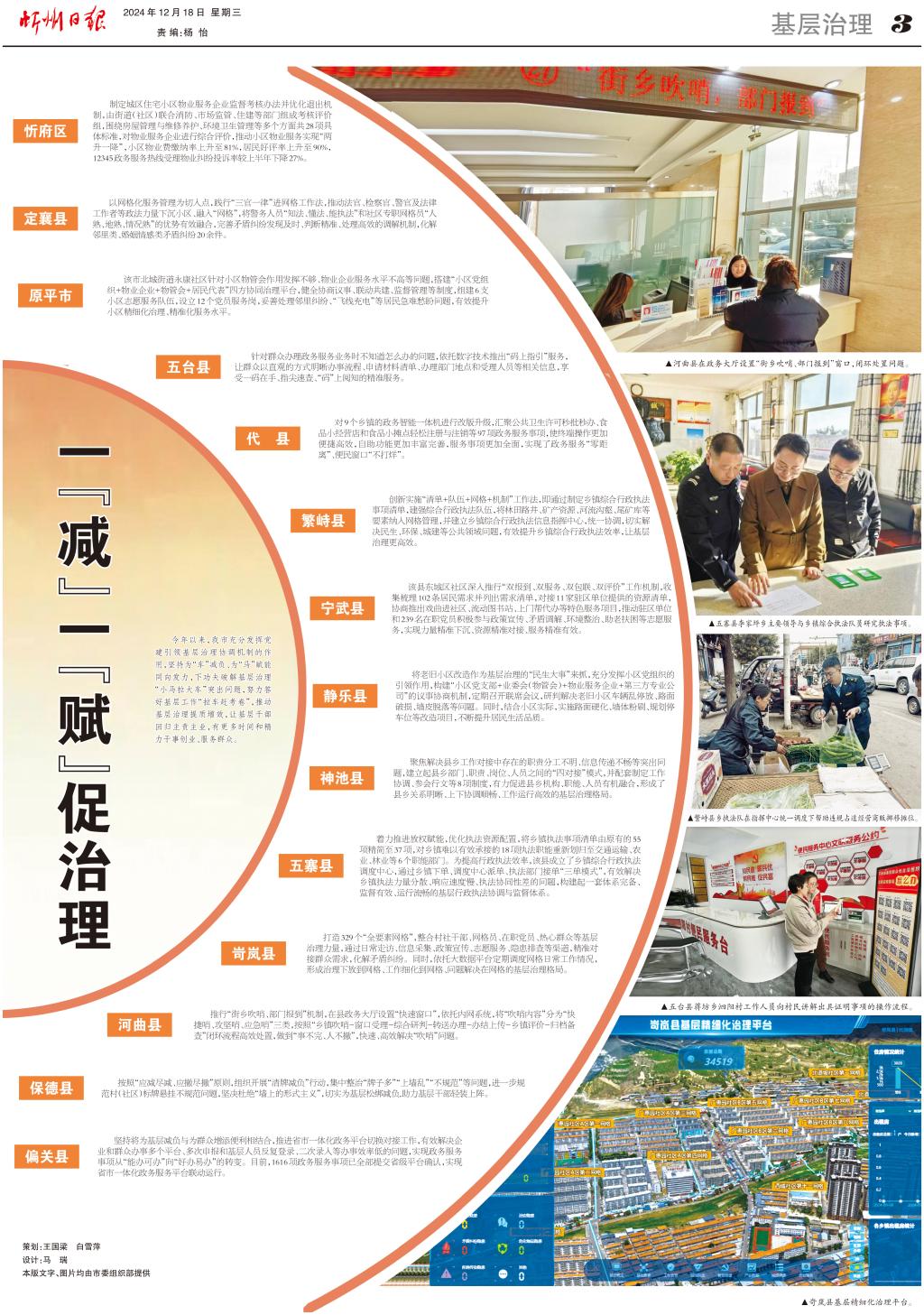 打造329個(gè)“全要素網(wǎng)格”,整合村社干部、網(wǎng)格員、在職黨員、熱心群眾等基層治理力量,通過日常走訪、信息采集、政策宣傳、志愿服務(wù)、隱患排查等渠道,精準(zhǔn)對接群眾需求,化解矛盾糾紛。同時(shí),依托大數(shù)據(jù)平臺定期調(diào)度網(wǎng)格日常工作情況,形成治理下放到網(wǎng)格、工作細(xì)化到網(wǎng)格、問題解決在網(wǎng)格的基層治理格局。
