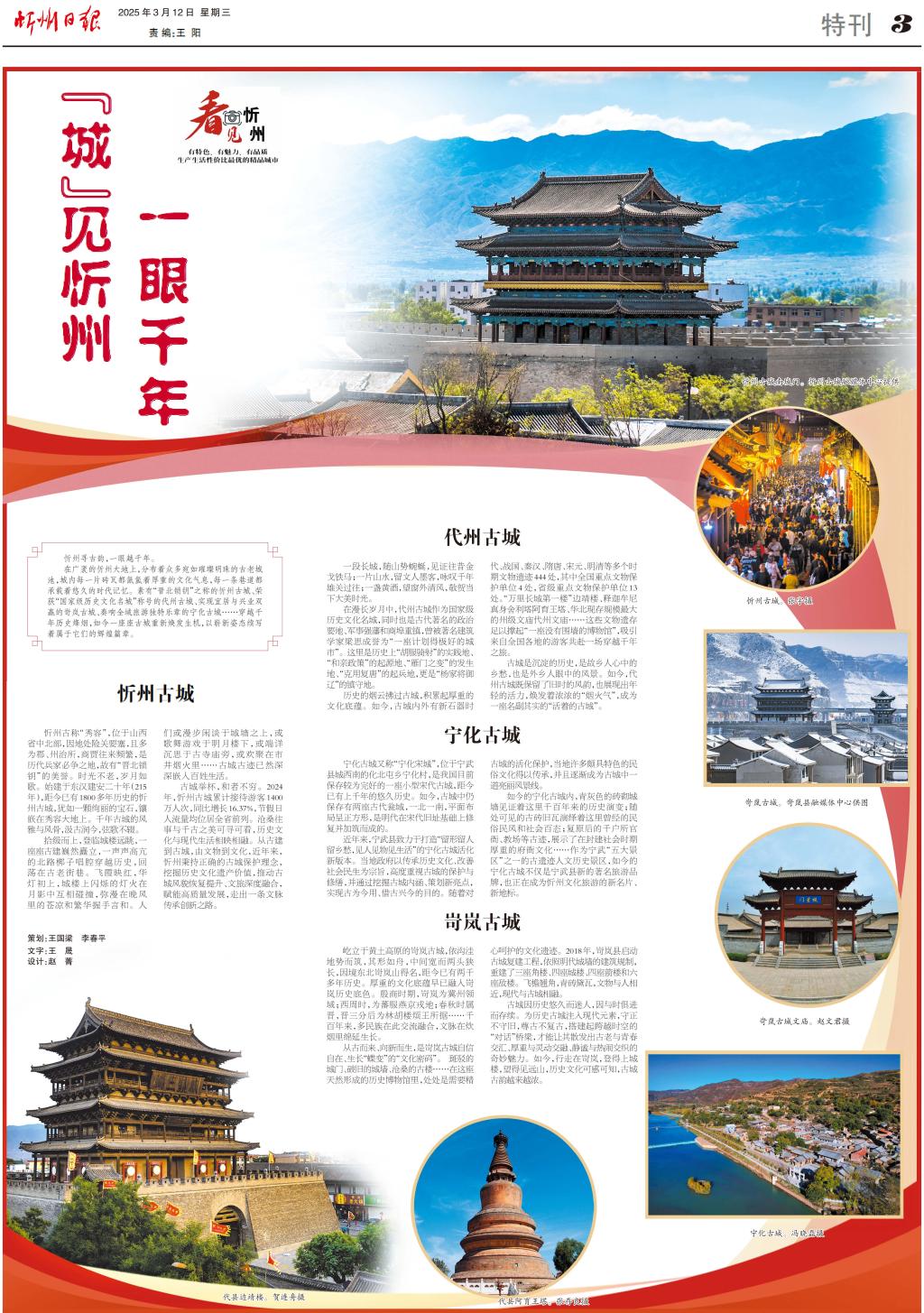 在廣袤的忻州大地上,分布著眾多宛如璀璨明珠的古老城池,城內(nèi)每一片磚瓦都氤氳著厚重的文化氣息,每一條巷道都承載著悠久的時代記憶。素有“晉北鎖鑰”之稱的忻州古城、榮獲“國家級歷史文化名城”稱號的代州古城、實現(xiàn)宜居與興業(yè)雙贏的岢嵐古城、奏響全域旅游獨特樂章的寧化古城……穿越千年歷史烽煙,如今一座座古城重新煥發(fā)生機,以嶄新姿態(tài)續(xù)寫著屬于它們的輝煌篇章。