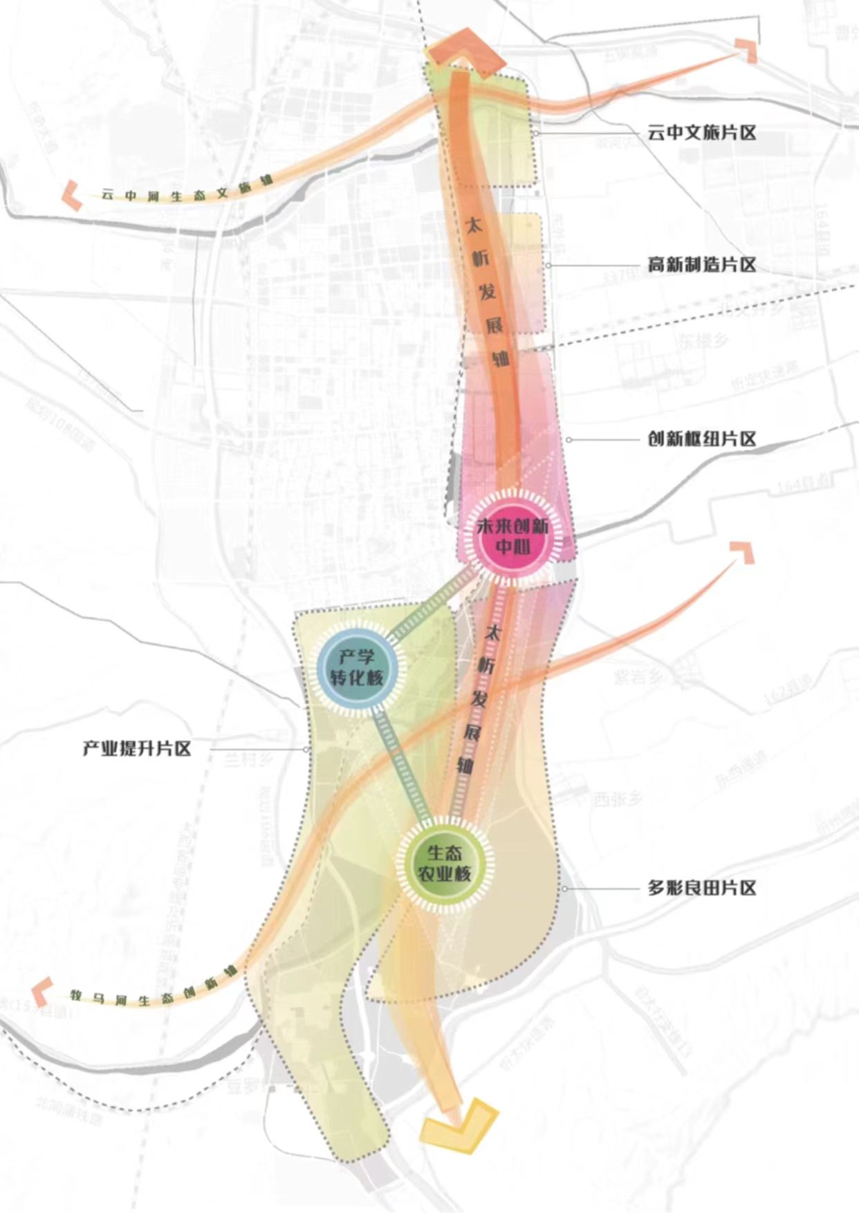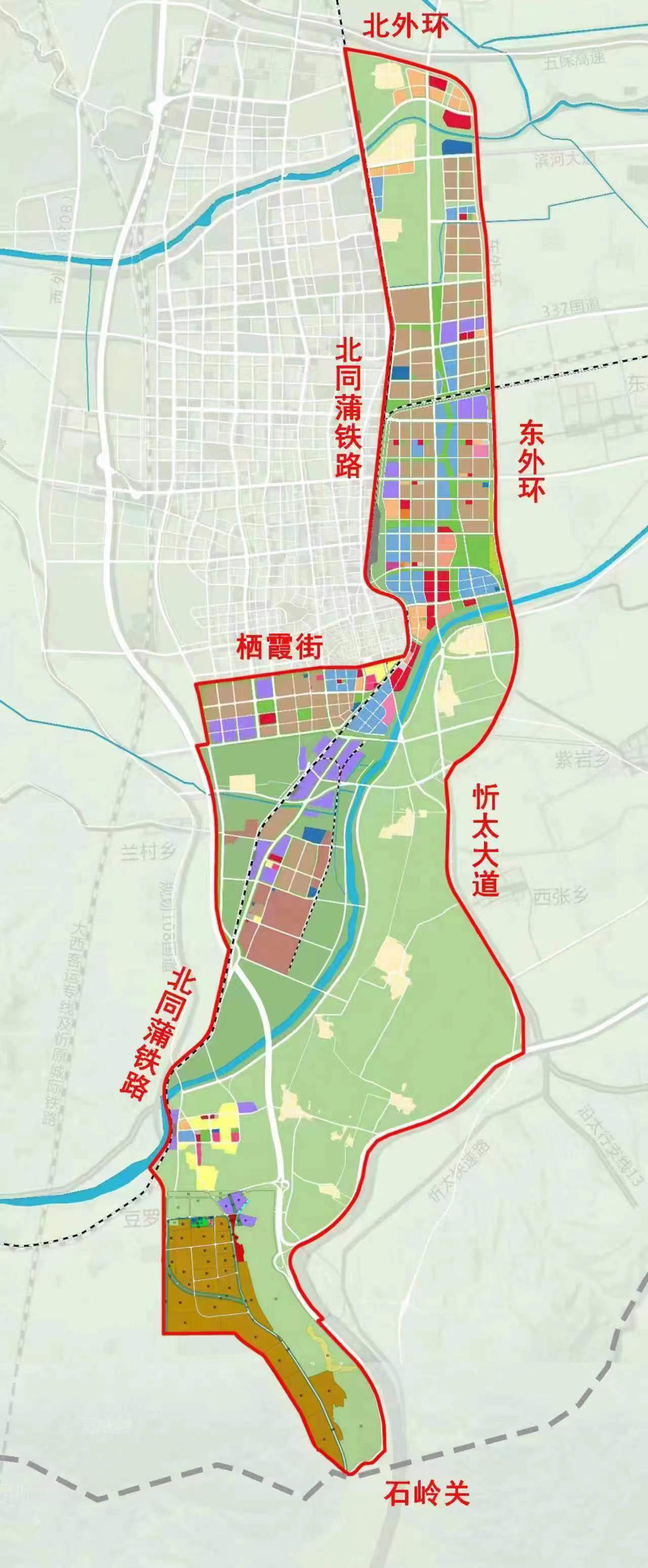 規(guī)劃面積約100平方公里,北至北外環(huán),南至石嶺關(太原界),西至北同蒲鐵路,東至東外環(huán)。新區(qū)作為太忻一體化經濟區(qū)忻州片區(qū)的啟動區(qū),堅持生態(tài)優(yōu)先、綠色發(fā)展,統(tǒng)籌生活、生態(tài)、生產三大空間,以“一心雙核、三軸五片區(qū)”規(guī)劃布局,預留未來產業(yè)發(fā)展用地,重點發(fā)展雜糧產業(yè)、現代物流產業(yè)、新能源材料產業(yè)、文旅產業(yè)和科技創(chuàng)新智造產業(yè),北部打造高新制造集合體、云中河東段打造休閑度假文旅區(qū)、中部打造創(chuàng)新樞紐核心區(qū)、西南部打造產業(yè)提升區(qū)、東南部打造多彩良田示范區(qū),形成與大盂產業(yè)新城南北呼應之勢。