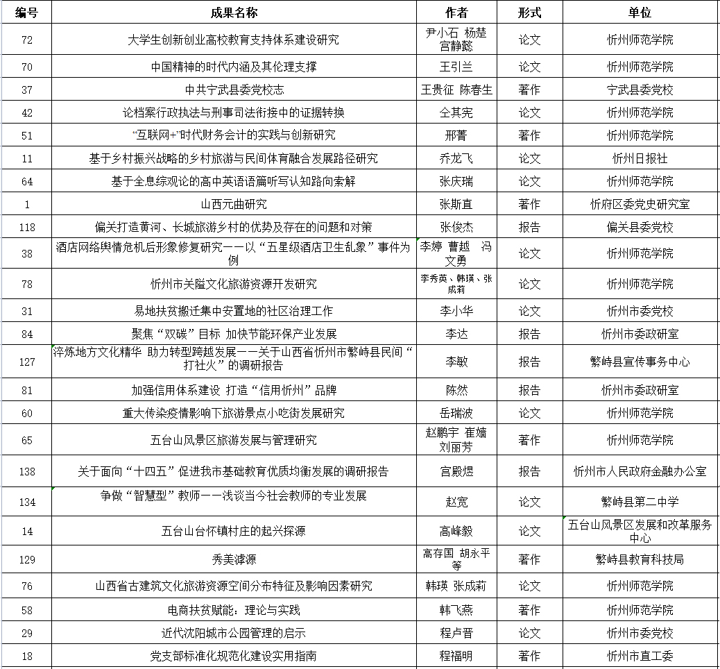 忻州市社會(huì)科學(xué)研究?jī)?yōu)秀成果二等獎(jiǎng)獲獎(jiǎng)名單(共25項(xiàng))(按姓氏筆畫(huà)排序)