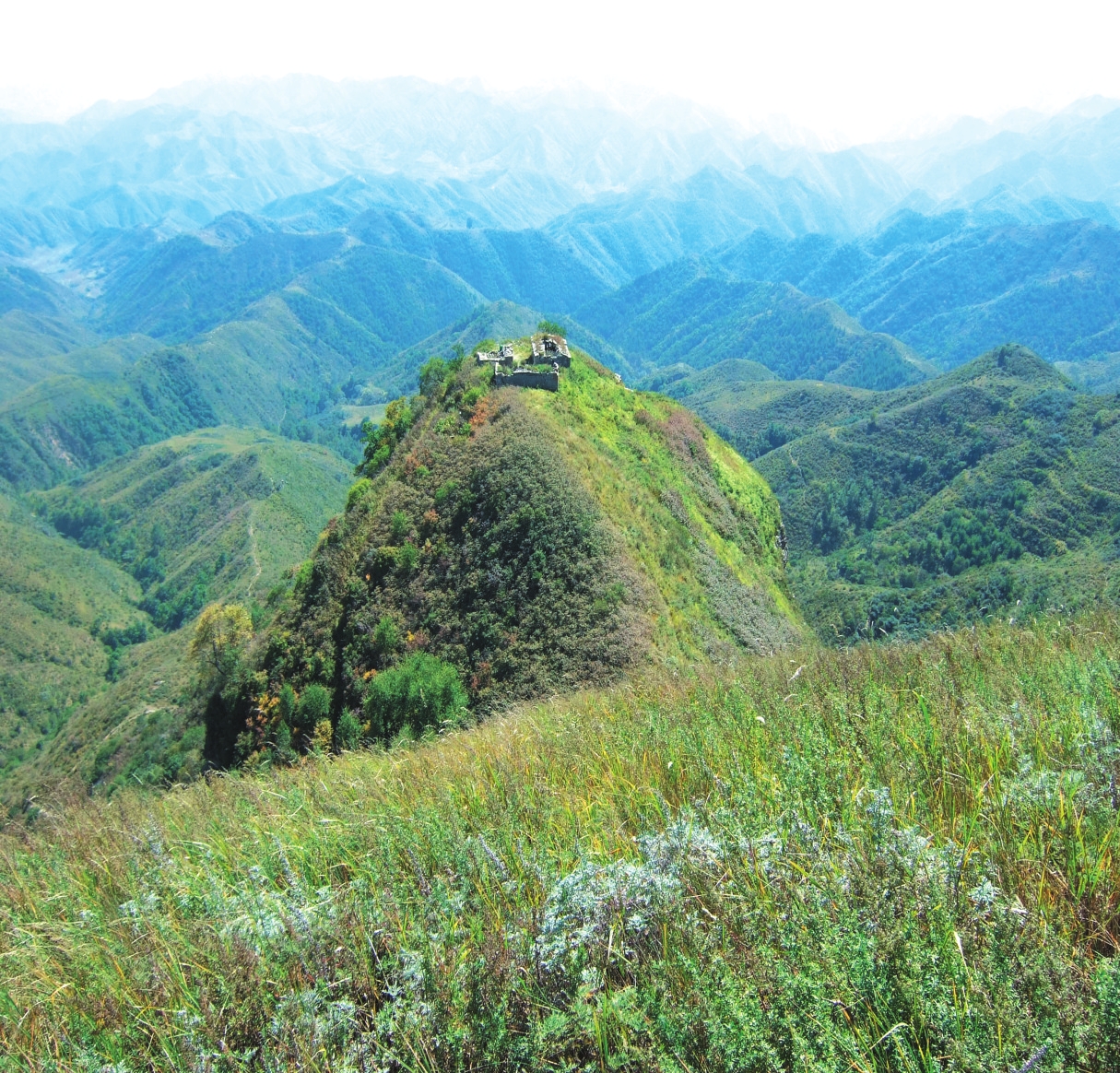 坡道在不斷升高,玉皇峁進(jìn)入我們的視野。在玉皇峁的腳下,我們看到了一處貌似村落的遺址,有磚石瓦礫散落,有殘存的石砌墻垣,有石頭筑堰的小塊梯田……玉皇峁村是一個自然村,但不知建于何時,亦不知廢于何時。玉皇峁村的故事,早已消逝在千百年的煙云中,我們無法還原往昔歲月里的真相。