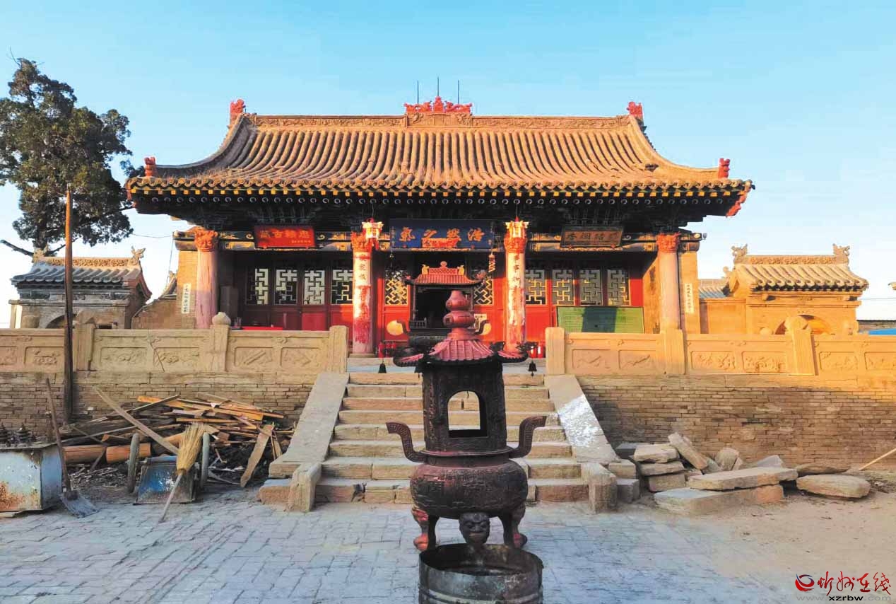 東關(guān)關(guān)帝廟位于原平市崞陽鎮(zhèn)東關(guān)村,距崞陽城東門外約100米。始建年代不詳,據(jù)正殿梁架題記載,清咸豐三年(1953)重修,現(xiàn)存建筑為清代遺構(gòu)。東西長25.5米,南北寬87米,占地面積2218平方米。坐北朝南,二進院落布局,中軸線建有影壁、大門、正殿和圣母殿,兩側(cè)為東西配殿。正殿磚砌臺基,前設(shè)月臺,其上三面設(shè)勾欄、望柱,欄上雕有各種花卉、如意及禽獸。殿身面寬三間,進深六椽,單檐懸山頂。七檁前后廊式構(gòu)架,斗拱五踩重翹,平身科每間一攢,出45度斜拱,前檐各間均設(shè)四扇六抹萬字紋格扇門,殿內(nèi)新塑像3尊。圣母殿磚砌臺基,殿身面寬三間,進深三椽,單檐硬山頂,四檁前廊式構(gòu)架。明間四扇六抹萬字紋格扇門,次間為格扇窗。殿內(nèi)新塑像3尊。廟內(nèi)存清代重修關(guān)帝廟碑3通,殘碑1通,石獅2對。1981年列為原平市(縣級)文物保護單位。2022年列為第三批市級文物保護單位。