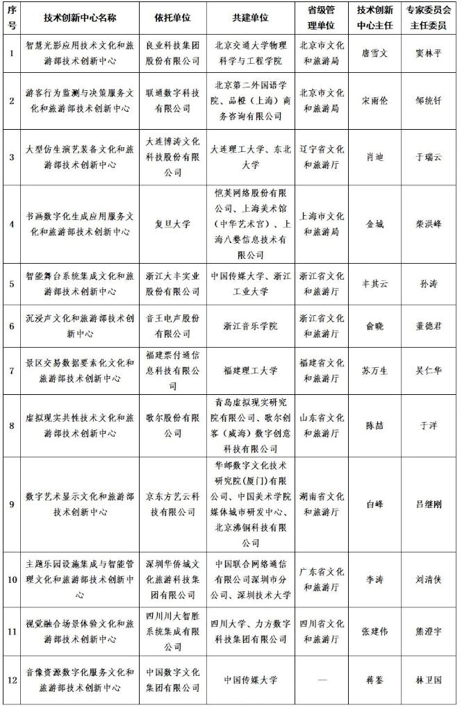 首批文化和旅游部技術(shù)創(chuàng)新中心建設(shè)名單主要涉及演藝裝備、游樂設(shè)施、智慧旅游與景區(qū)建設(shè)、藝術(shù)顯示與交互體驗(yàn)、文化數(shù)字化與智能化等特色鮮明、應(yīng)用性強(qiáng)的場景,依托單位既有行業(yè)知名企業(yè),又有國內(nèi)重點(diǎn)高校。建設(shè)期不超過1年,建設(shè)完成后將按程序組織驗(yàn)收。