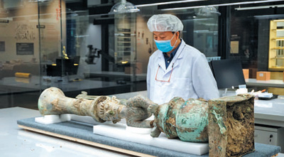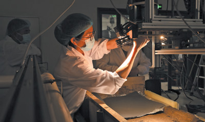 考古人員在實(shí)驗(yàn)室,對(duì)三星堆出土文物進(jìn)行高光譜掃描。廣漢市委宣傳部供圖
