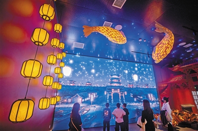 觀眾在天津數(shù)字藝術(shù)博物館全景數(shù)字藝術(shù)互動(dòng)大展預(yù)展上參觀。新華社記者 孫凡越攝