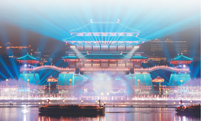 陜西西安大唐芙蓉園的水舞光影秀。彭 華攝(影像中國(guó))