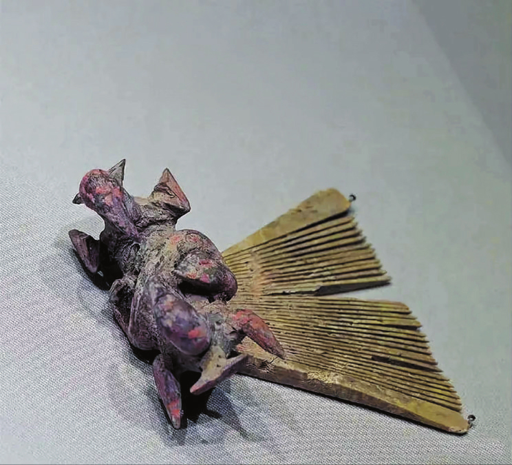 從北白鵝墓地500多件文物中精選出來(lái)的骨梳、銅盒、飾品等,大小不一、形態(tài)各異,浸潤(rùn)著時(shí)光的痕跡。銅盒里面的膏狀物經(jīng)檢測(cè)為化妝品,古代女性?shī)y容有三種顏色:白粉覆臉、黛黑描眉畫眼、朱砂或胭脂涂抹口紅。從骨梳來(lái)看女性裝飾,春秋時(shí)期已經(jīng)有骨笄等束發(fā)工具,沈從文編的《中國(guó)古代服飾研究》中也提及女子成年“及笄”。臨汾隰縣瓦窯坡墓地出土的東周骨梳,上下兩面榫卯對(duì)應(yīng),骨梳背上木質(zhì)榫接左右對(duì)稱有一對(duì)張開(kāi)翅膀的鳥。周代服飾主要為上衣下裳、上衣右衽,衣服材質(zhì)多是皮毛、麻、葛等。此外東周時(shí)期,青銅鏡制作工藝日趨精美,使用頗為普遍。綜合這些元素,得以想象鏡中的燕姬著禮服、袍、裙、冠飾、玉珠等,或見(jiàn)烏黑的發(fā)髻露出一對(duì)展翅欲飛的鳥兒,顯現(xiàn)古代女性別致的嫵媚。