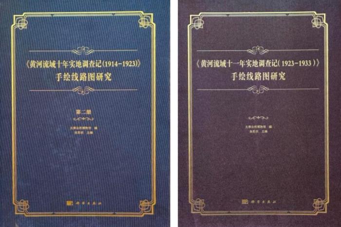 《〈黃河流域十年實(shí)地調(diào)查記(1914—1923)〉手繪線路圖研究》(第二冊)和《〈黃河流域十一年實(shí)地調(diào)查記(1923—1933)〉手繪線路圖研究》封面。 天津自然博物館供圖