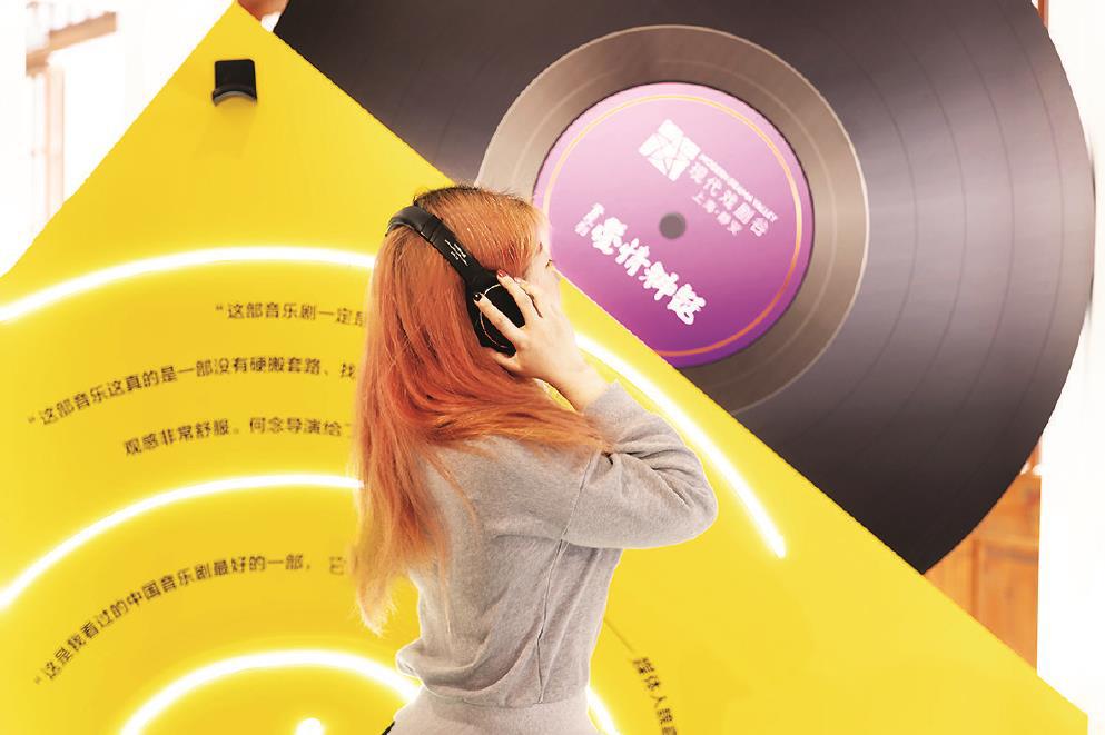 《愛情神話》限時快閃店內(nèi),市民游客正在“影音室”欣賞音樂劇唱段。(主辦方供圖)