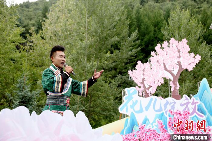 圖為花兒歌手演唱花兒串燒《娘娘山上把花兒漫》。張?zhí)砀z