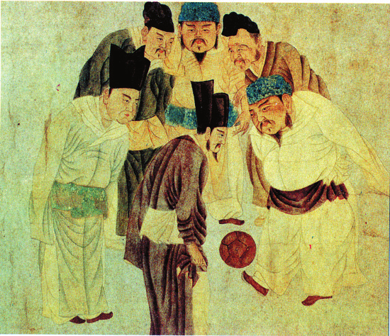 兩宋時期,鞠從八片堅皮縫制發(fā)展成十二片香皮砌成,且“不漏線角”,重量“正重十二兩”,外形“硬湊十分圓”。工藝的改進推動了球技的發(fā)展,出現(xiàn)了高俅、柳三復等憑借高超球技獲得官位的蹴鞠高手。