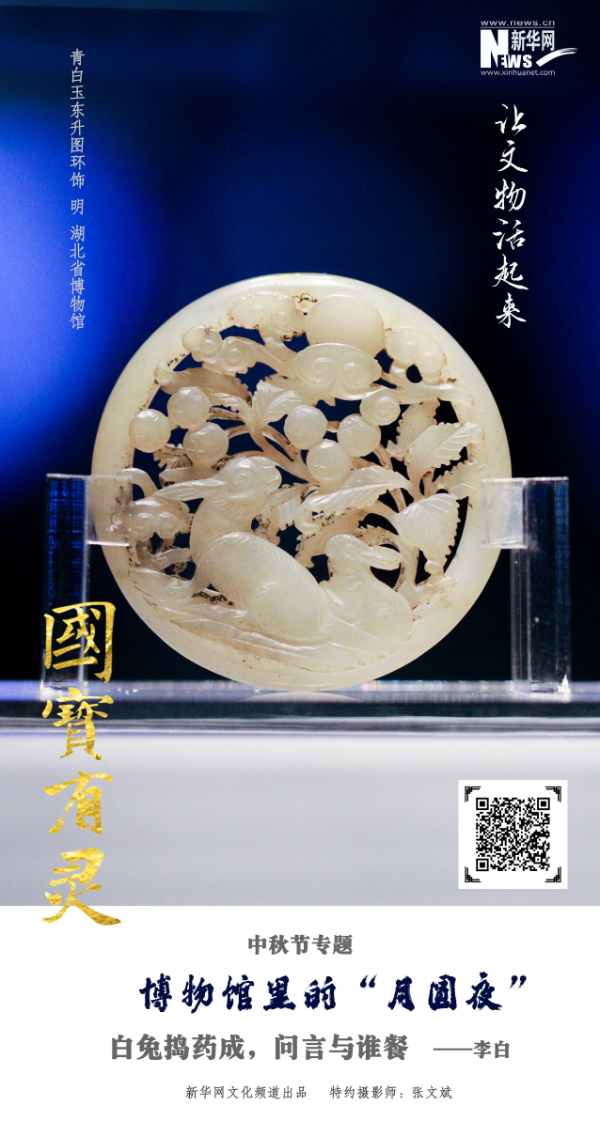 編者按:又是一年中秋節(jié)到,值此佳節(jié)到來(lái)之際,新華網(wǎng)文化頻道“國(guó)寶有靈”文化IP特推出中秋節(jié)專(zhuān)題《博物館里的“月圓夜”》,精選了六件帶有月亮、玉兔等元素的博物館中的文物,并配有與月有關(guān)的詩(shī)句,制作成了海報(bào),希望借由這些富有古老文化內(nèi)涵的國(guó)寶珍品,讓您感受到傳統(tǒng)中秋文化的魅力,為您的節(jié)日增添更多意趣,從中體悟到中華優(yōu)秀傳統(tǒng)文化的精髓所在,有所增益,有所感悟。新華網(wǎng)文化頻道在此祝您闔家團(tuán)圓,幸福安康!