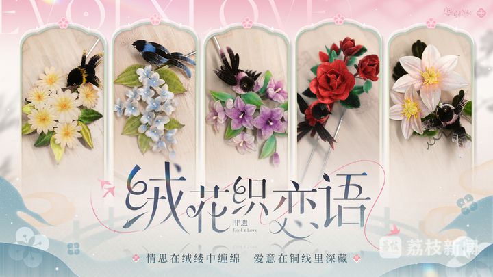 作為親歷過絨花發(fā)展巔峰與谷底時(shí)刻的技藝傳承人,趙樹憲深知,若想讓絨花在新時(shí)代煥發(fā)生機(jī),必須進(jìn)行創(chuàng)新和改良。他鼓勵(lì)工作室的年輕人對(duì)絨花的造型、用途進(jìn)行創(chuàng)新,也總是保持著開放的態(tài)度與不同的品牌及行業(yè)進(jìn)行跨界合作。