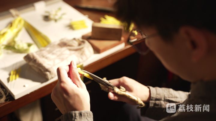 一刷、一捻、一旋,如今技藝熟練的嚴(yán)鑫可以在頃刻之間,通過指尖的功夫,用蠶絲變出一根絨條?!皬氖逻@項(xiàng)技藝以后,我才發(fā)現(xiàn)自己是比較善于做這種細(xì)致的手工方面的工作的?!?/p>