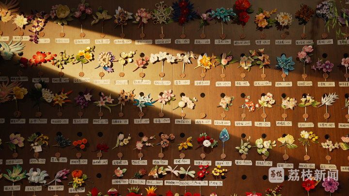 金黃的銀杏、潔白的茉莉、粉嫩的桃花……在南京甘熙故居內(nèi)的一處深幽廳房,彰顯著四季之美的絨花同時(shí)在一面古樸的深色墻面上盛放,引來(lái)游人的注目。這似乎也是絨花自身發(fā)展的生動(dòng)隱喻,歷經(jīng)千年的喧囂,它們依舊花開不敗,綻放出奪目的光彩。